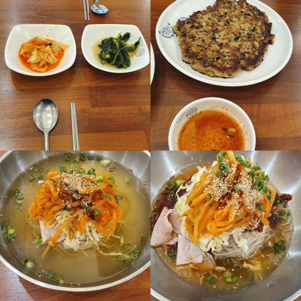 골목식당 방송때문에 많이 알려진 곳이라 사람이 많아서 주차할 곳이 없으면 어쩌지 걱정했는데 다행스럽게 평일이라서 그런지 주차할 곳이 많았습니다. 메뉴는 물냉과 비냉, 고기완자가 있었고 온면도 있었습니다. 저희는 고기완자와 물냉, 비냉을 주문했습니다. 밑반찬으로 양배추김치와 나물무침이 나옵니다. 고기완자가 먼저 나왔습니다. 전 방송을 보지 않고 찾아가서 알고 있던 완자의 모습이 아니라 처음에 신기했습니다. 전에 가까운 납작한 형태였습니다. 몇 가지 안 들어간 거 같은데 맛있게 잘 먹었습니다. 집에 와서 따라 하고 싶더라고요. 고기완자를 반쯤 먹어갈 때물냉과 비냉이 나왔습니다. 제 개인적으로 정말 맛있게 먹었네요. 호불호가 없지 않을까 많은 사람들이 좋아할 만한 맛이지만 다른 곳에서는 맛보질 못할 그런 맛이었습니다. 정말 맛있게 먹었네요.