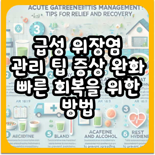 급성 위장염은 적절한 관리와 예방을 통해 빠르게 회복할 수 있습니다. 증상이 나타났을 때는 위의 관리 팁을 실천하고, 필요한 경우 의료 전문가의 도움을 받으세요. 평소 위생 관리와 건강한 식습관을 유지하여 위장염으로부터 안전한 생활을 만들어보세요.