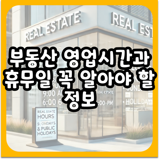 | 부동산 영업시간과 휴무일 꼭 알아야 할 정보 (0) | 2025.01.23 |