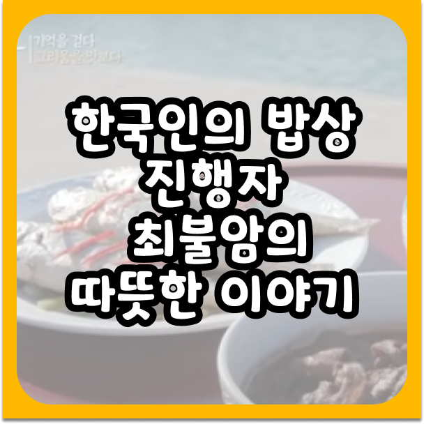 KBS 1TV의 대표 교양 프로그램인 '한국인의 밥상'은 2011년 첫 방송 이후 꾸준히 사랑받으며 한국인의 삶과 음식을 조명하는 중요한 역할을 해왔습니다. 이 프로그램을 이야기할 때 빼놓을 수 없는 인물이 바로 배우 최불암 선생님입니다. 그의 따뜻하고 진솔한 내레이션은 프로그램의 정체성을 확고히 하는 핵심 요소로 자리 잡았습니다.