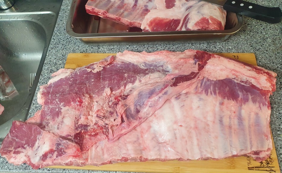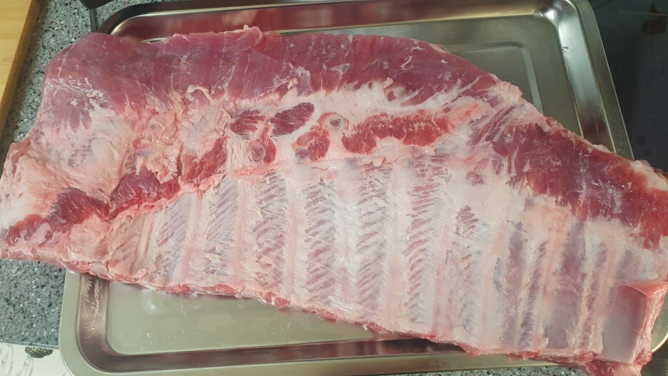 수비드머신을 구입한 지 약 2년이 넘었고 수비드 관련 카페에 가보면 스페어립은 꼭 해보시는 거 같더라고요. 그래서 저도 따라 해봤습니다. 고기 생각이라는 곳에서 구입한 미국산 스페어립 원육입니다. 4~6kg이라고 하던데 정확하게 몇 kg인지는 모르겠네요. 올 때 이미 조금 해동된 상태로 와서 바로 냉장실에 두고 이틀을 추가 해동했습니다.