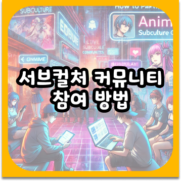 서브컬처 커뮤니티에 참여하는 것은 단순히 정보를 소비하는 것을 넘어, 같은 관심사를 공유하는 사람들과 소통하고 새로운 문화를 직접 체험하는 기회가 됩니다. 온라인 커뮤니티에서부터 오프라인 행사, 창작 활동에 이르기까지 다양한 방법을 통해 서브컬처를 더욱 깊이 있게 즐길 수 있습니다. “문화는 소통에서 탄생한다.”는 말처럼, 다양한 방식으로 서브컬처 커뮤니티에 참여하며 더욱 풍성한 문화적 경험을 만들어 보세요!