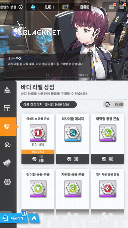 바디 레벨 상점에서는 특정한 콘솔 아이템도 판매됩니다. 이 아이템들은 니케의 능력치를 향상시키는 데 도움이 될 수 있지만, 일반적으로 다른 자원보다 우선순위가 낮은 경우가 많습니다.