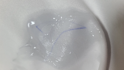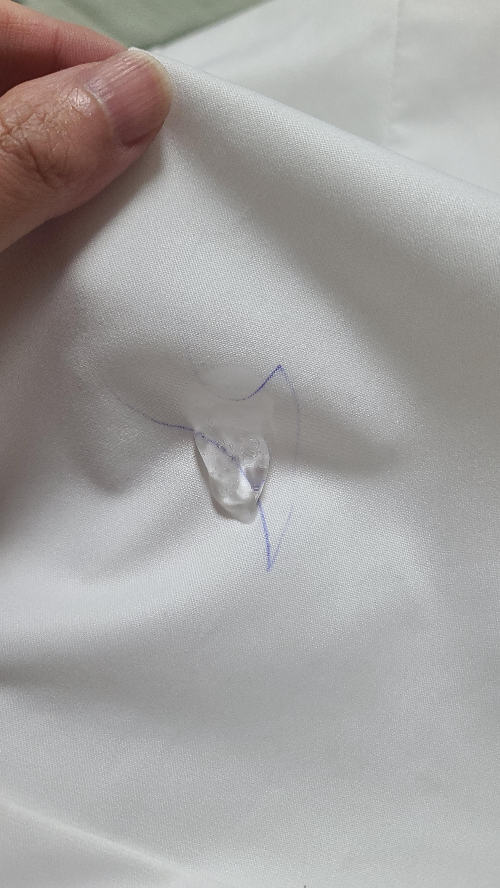 - 볼펜 자국이 있는 부위에 톡톡 두드리듯이 흡수시키면서 닦아냅니다.