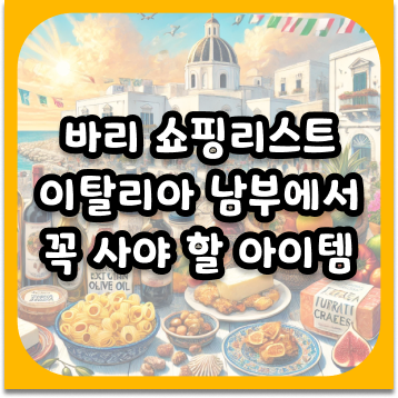 바리는 단순한 여행지가 아니라 이탈리아 남부의 미식과 예술, 전통과 현대가 어우러진 도시입니다. 이곳에서는 현지 특산품부터 장인의 손길이 담긴 제품까지 다양한 쇼핑 아이템을 만날 수 있습니다. 바리에서 꼭 사야 할 아이템을 소개합니다.