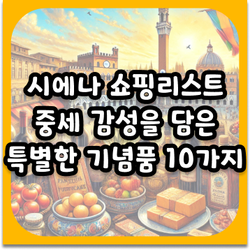 이탈리아 토스카나(Toscana) 지역에 위치한 시에나(Siena)는 중세의 매력을 간직한 아름다운 도시입니다. 이곳에서는 독특한 전통을 반영한 다양한 쇼핑 아이템을 발견할 수 있습니다. 시에나에서 꼭 사야 할 쇼핑리스트를 정리했으니, 여행 전 참고하여 특별한 기념품과 현지 아이템을 챙겨보세요!