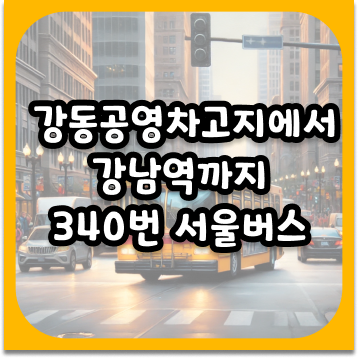 "340번 서울버스는 강동공영차고지에서 강남역까지 다양한 주요 지점을 경유하며, 시민들에게 편리한 이동 수단을 제공합니다. 정확한 운행 시간과 요금을 확인하고, 서울을 더욱 효율적으로 이동해 보세요."