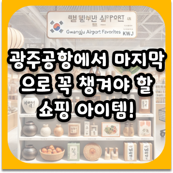 광주공항(KWJ)에서의 쇼핑이 단순한 소비가 아닌, 따뜻한 기억으로 남을 수 있도록 알차게 마무리해보세요. 마지막 순간까지 정성과 감성이 담긴 선택으로, 이번 여행을 더욱 오래 기억에 남길 수 있습니다.
