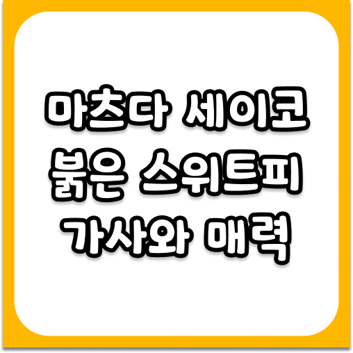 일본 아이돌계의 전설 마츠다 세이코의 대표곡 중 하나인 赤いスイートピー (붉은 스위트피)는 1982년 발표 이후 지금까지도 많은 사랑을 받고 있는 명곡입니다. 부드러운 멜로디와 서정적인 가사, 마츠다 세이코 특유의 청아한 목소리가 조화를 이루어 일본 가요사에 한 획을 그은 곡이죠.