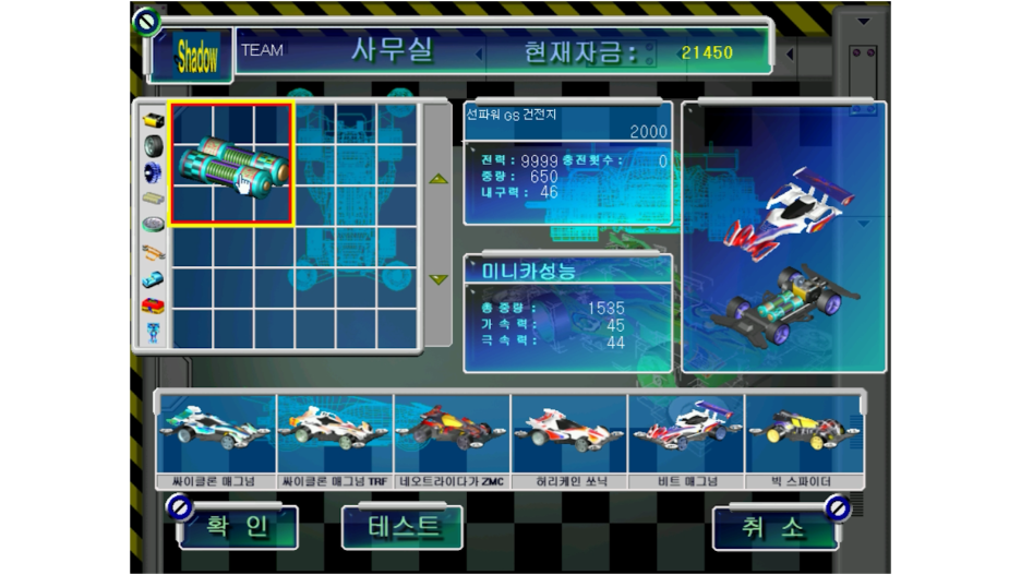 지난번에는 번개돌이 레이싱카라는 게임을 보여드렸었는데요. 이번에도 비슷한 장르의 게임인 '영광의 챔피언'입니다. 제목을 보면 애니메이션'우리는 챔피언'과 사이버포뮬러의 한국 제목인 '영광의 레이서'를 반반 섞여있습니다. 제목이 그래서일까요. 게임에 등장하는 기체들이 대부분 낯이 익습니다.