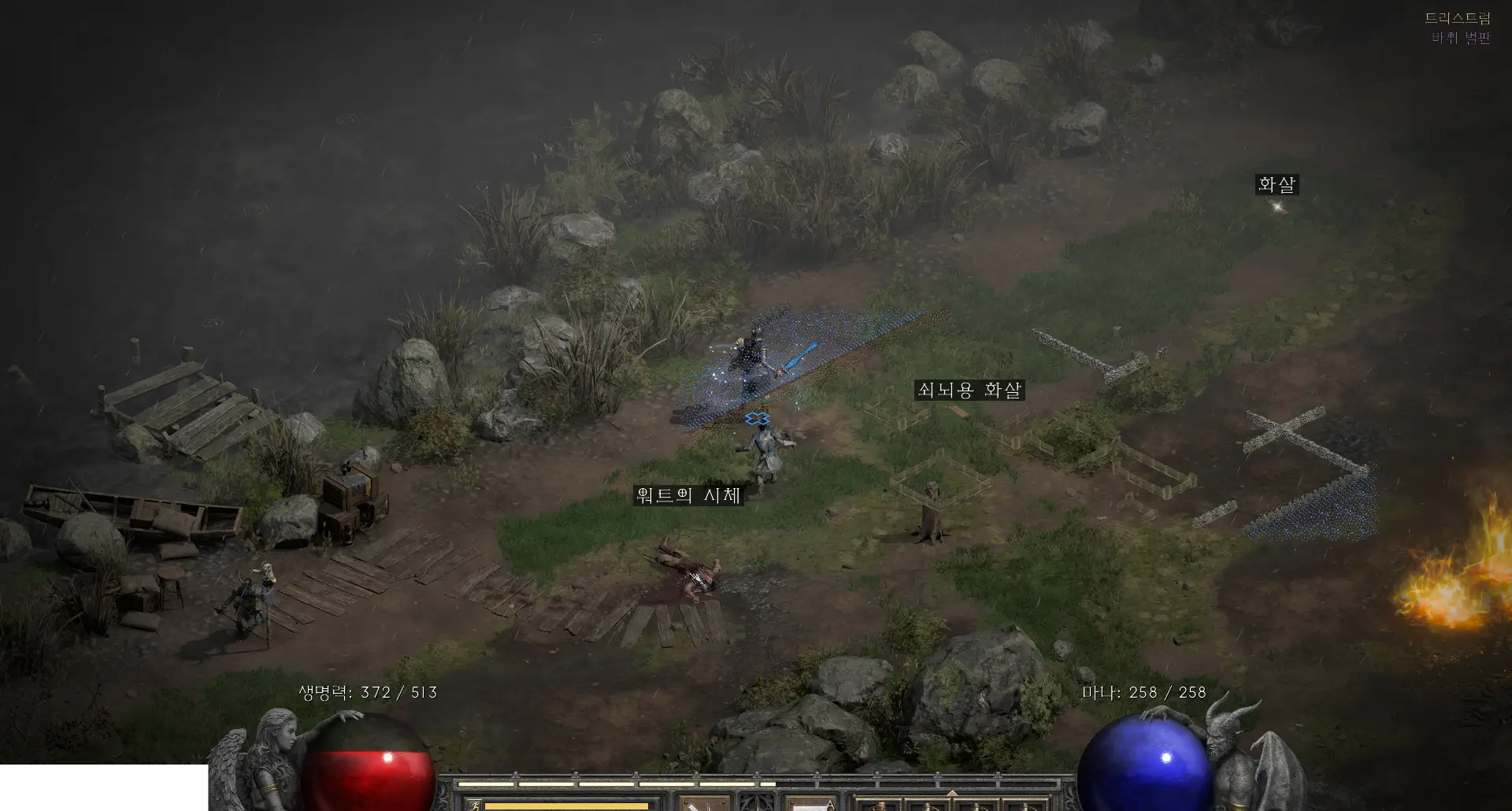 3단계 트리스트럼에서 와트의 다리 획득 입장 즉시 포탈을 하나 열고, 마을 반대편 다리 근처 불탄 집 방향으로 이동하면 Wirt’s Corpse가 있습니다. 시신을 조사하면 와트의 다리가 떨어집니다. 전투가 어려우면 몬스터를 원형으로 돌려 빼거나 지형 끼임을 활용하세요. 이 순간 디아블로2 카우방 와트의 다리(Wirt’s Leg) 획득의 핵심 목표가 달성됩니다.