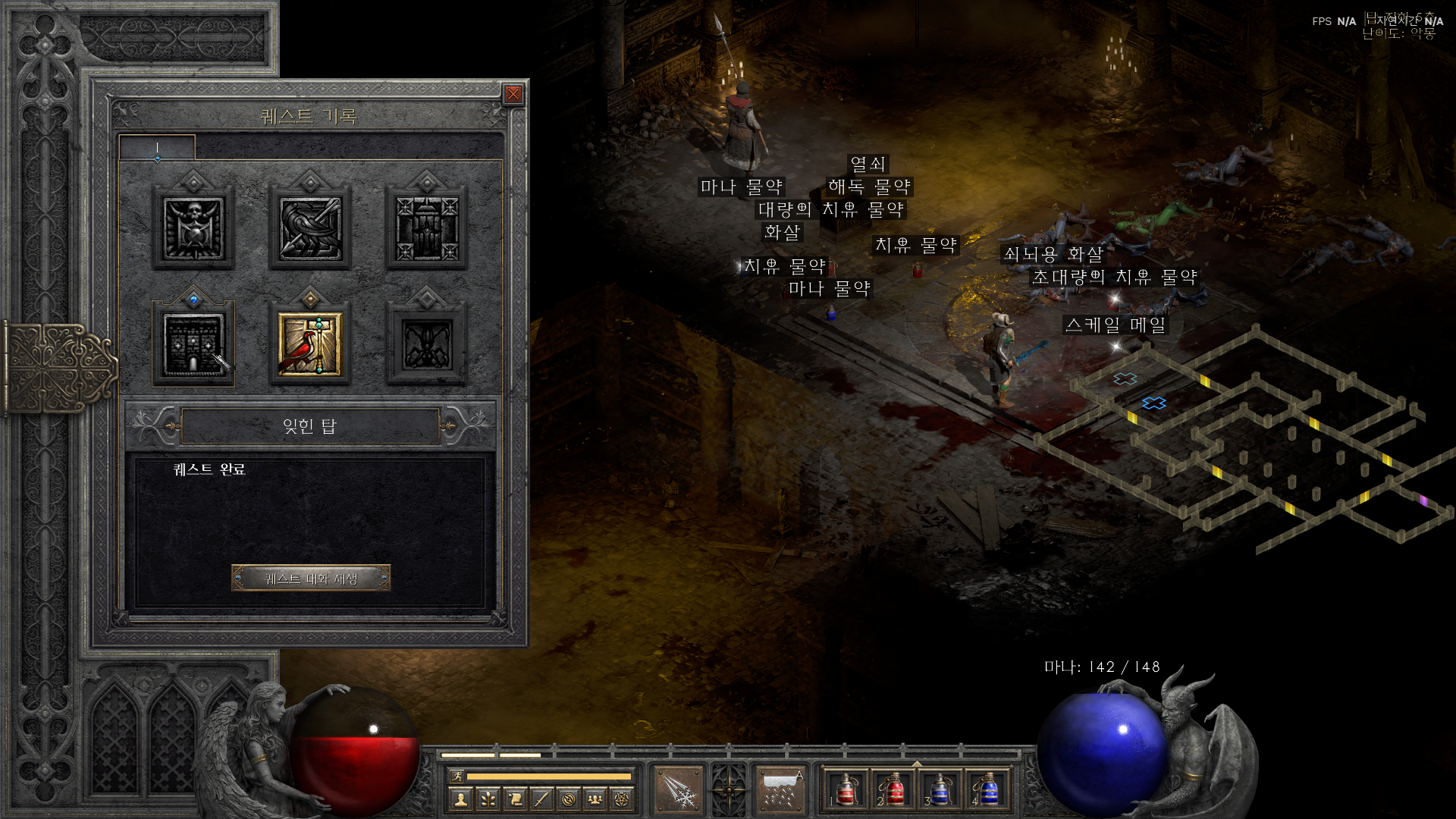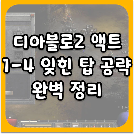 신규 또는 복귀 유저가 디아블로2 액트1-4 잊힌 탑 공략으로 가장 먼저 챙겨야 할 것은 이동 속도와 생존이다. 부츠 이동 속도, 해독제(액트2 라다먼트/둔화 대응), 항상 키우는 저항(화염/번개/냉기/독) 포션을 미리 확보하자. 포탈 스크롤은 최소 3묶음, 타운 포털과 식별 주문서를 여유 있게 들고 시작하면 디아블로2 액트1-4 잊힌 탑 공략의 초반 효율이 껑충 뛴다.
