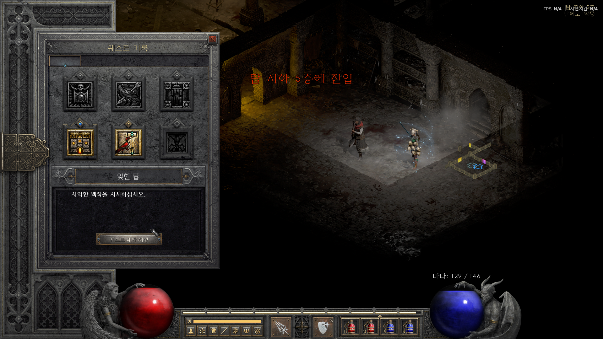 리저렉션(R) 기준으로 시야/조작감이 개선되어 디아블로2 액트1-4 잊힌 탑 공략의 텔레포트 루트가 안정적이다. 인터페이스 배율을 85~100%로 맞추고, 미니맵 투명도를 높여 길찾기 시간을 줄이자.