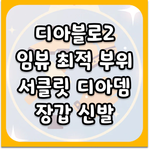 디아블로2 임뷰 최적 부위, 서클릿 임뷰, 디아뎀 임뷰, 장갑 임뷰, 신발 임뷰, 디아블로2 레저렉션, 임뷰 타이밍, 파밍 동선, 액트1 공략, 차르시 임뷰