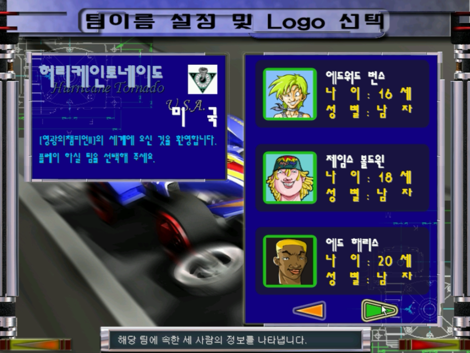 전작에서는 팀명, 로고만 정할 수 있었는데 반해 이번 작품에서는 국가대항전으로 진행을 하게 됩니다. 한국, 일본 등 다양한 나라들이 참가하고 있습니다. 나라를 넘기면 넘길수록 캐릭터의 생김새가 눈에 확 들어옵니다.