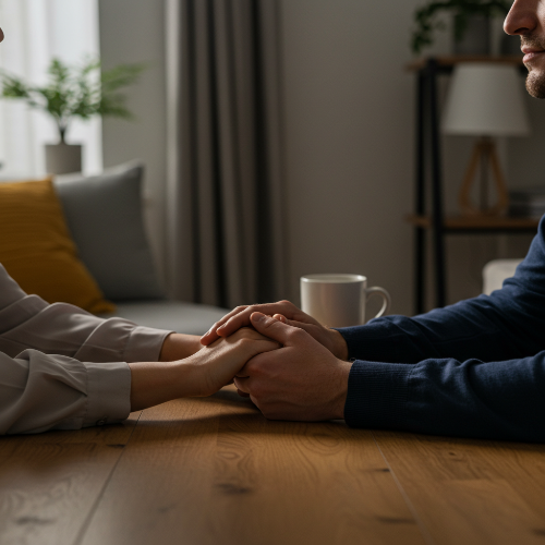 상처 기억, 죄책감, 혹은 자존감 저하가 배후에 있을 수 있습니다. 자기연민과 한계선 연습이 필요합니다. 이때 남편과 손잡는 꿈 은 ‘나를 먼저 진정시키는 기술’을 배우라는 초대입니다.