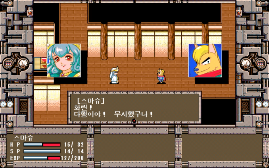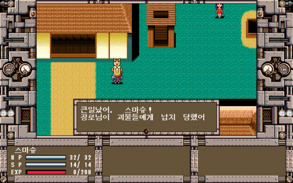 기차와 마을에서 대화를 조금하고 강아지 마을에 도착했습니다. 진행상 촌장을 먼저 만나야 하는데 강아지면서 머리 윗둥이..없네요. 촌장 옆에 있는 캐릭터는 '화린'이라는 캐릭터로 동료가 되는 마법형 캐릭터입니다.