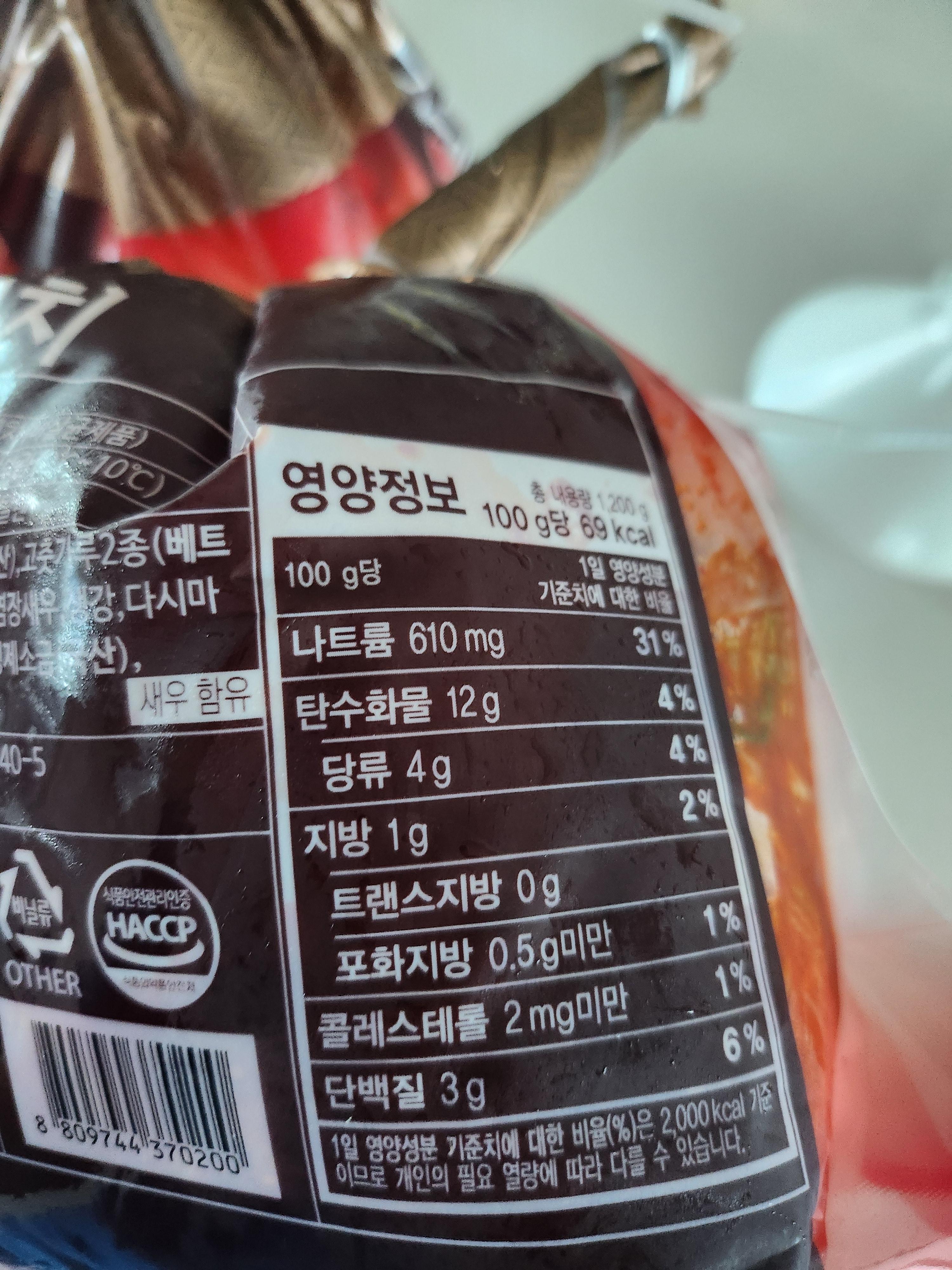 | 특징 | 냉장 보관, HACCP 적용, 국내산 배추 사용, 색소와 방부제 없이 깔끔한 맛 성향 |