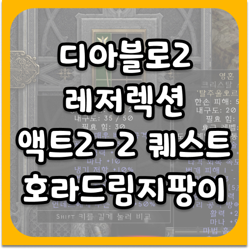 이 표기를 기억하면 검색과 실전 플레이가 편해지며 디아블로2 레저렉션 액트2 2 퀘스트 공략 호라드림지팡이 진행이 한결 수월해집니다.