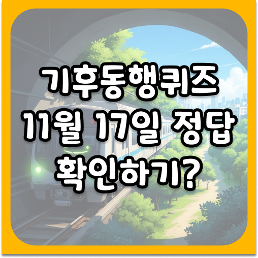 본 포스팅은 기후동행퀴즈 11월 17일 정답 관련 정보를 제공하기 위한 목적으로 작성되었습니다. 퀴즈 내용, 정답, 혜택 등은 주최 측의 사정에 따라 예고 없이 변경될 수 있습니다. 본문 내용에 오류가 있을 수 있으며, 가장 정확한 정보는 T머니 GO 앱 또는 기후동행카드 공식 안내 채널을 통해 직접 확인하시기 바랍니다. 본 정보에 기반한 참여 및 결정에 대한 책임은 이용자 본인에게 있습니다.