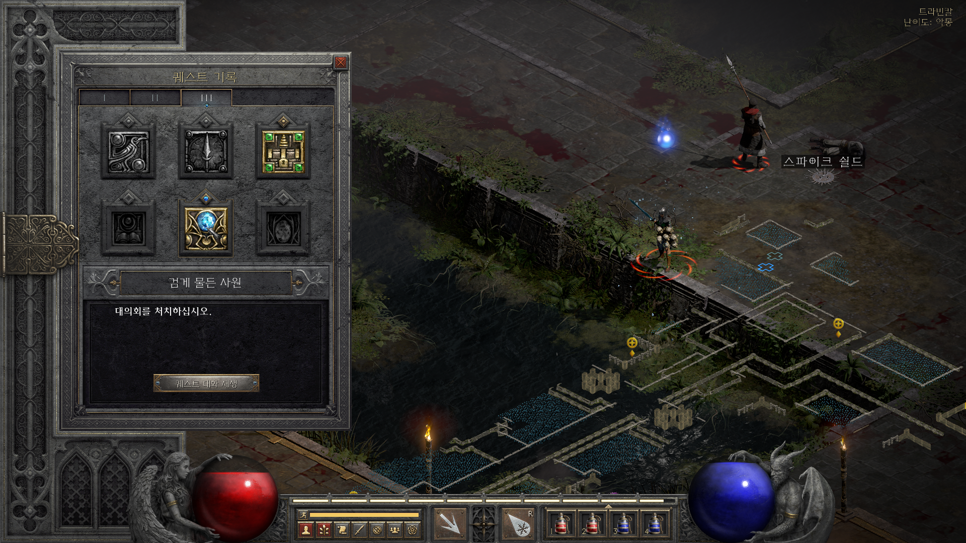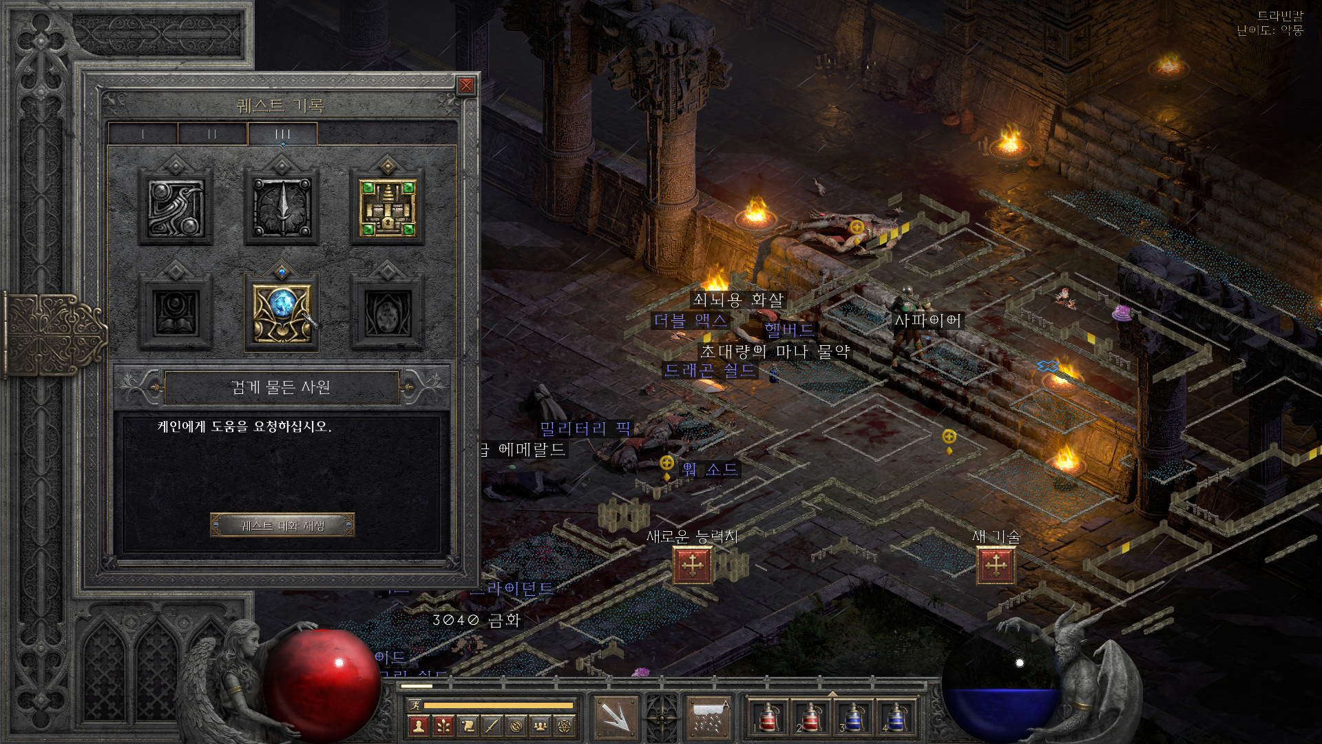 디아블로2 레저렉션 액트3 5 퀘스트 공략 검게물든사원 가는 길