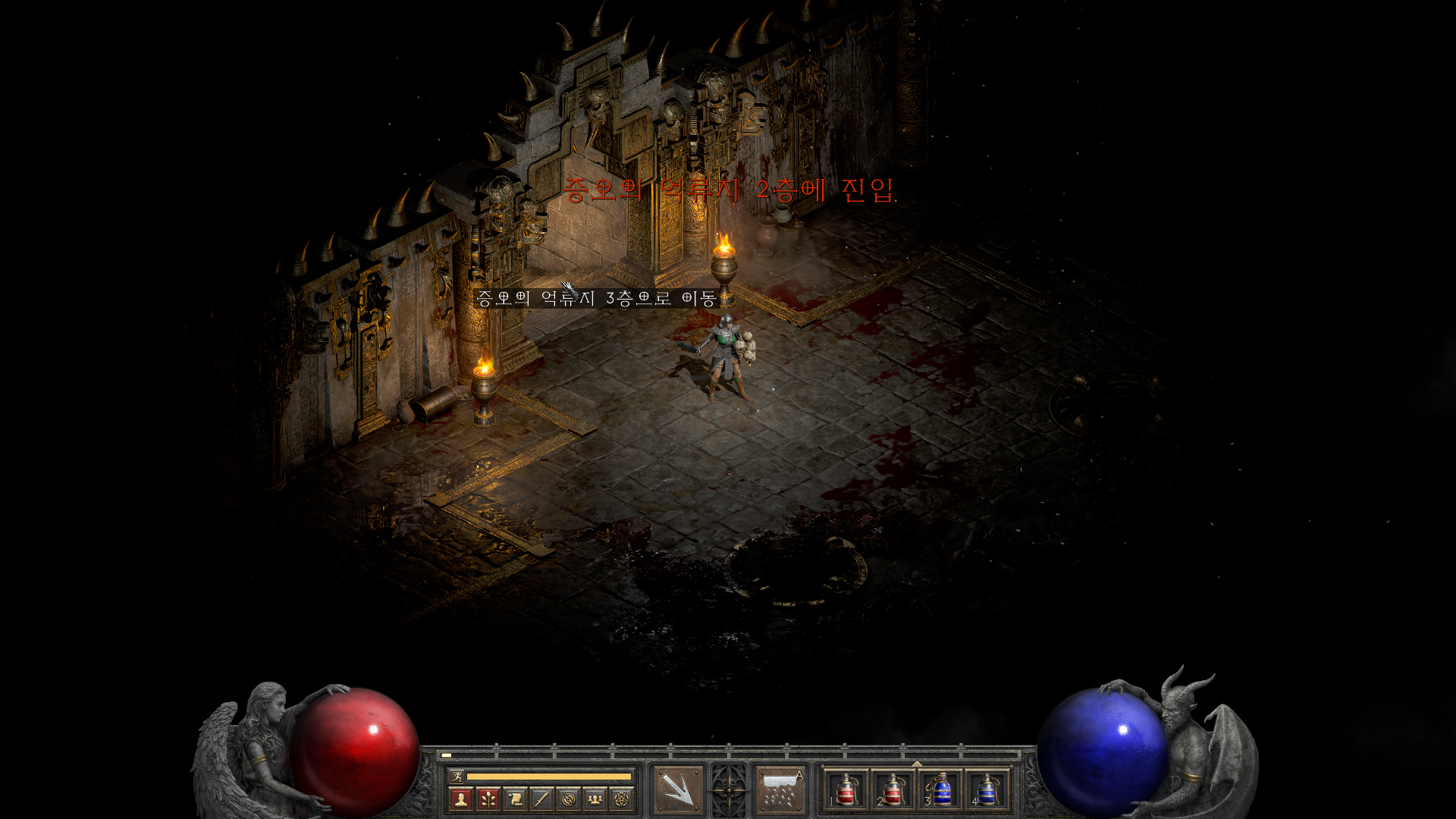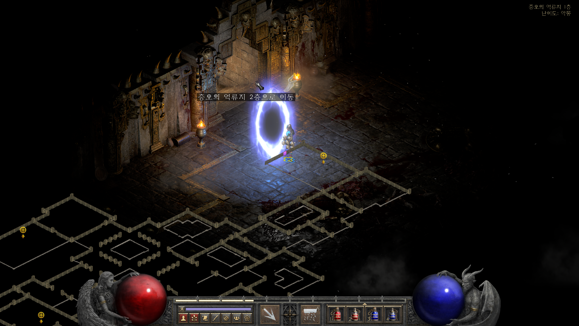 순간이동진을 확보했다면, 이제 마음 편히 3층으로 내려가는 입구를 찾으시면 됩니다. 2층은 1층보다 구조가 복잡하지만, 순간이동진만 찾으면 액트3 6 퀘스트의 절반은 성공한 것이나 다름없습니다.
