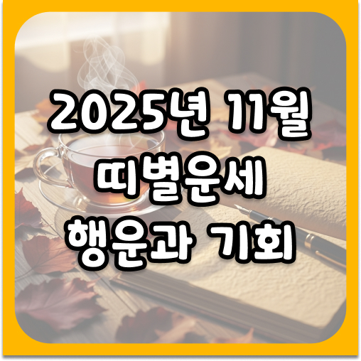 어느덧 2025년도 막바지를 향해 달려가고 있어요. 찬 바람이 불기 시작하는 11월, 여러분의 마음속에는 어떤 기대와 걱정이 공존하고 있나요? 한 해를 마무리하며 다가올 겨울을 준비하는 이 시기에는 유독 앞으로의 흐름이 궁금해지곤 하죠. 오늘은 여러분의 불안을 잠재우고 희망을 채워드릴 2025년 11월 띠별운세를 아주 상세하게 정리해보았어요. 이번 달은 전반적으로 차분한 기운 속에서 실속을 챙겨야 하는 흐름이 강하답니다. 각 띠별로 어떤 특별한 행운이 숨어있는지, 그리고 조심해야 할 부분은 무엇인지 천천히 읽어보시길 바래요.
