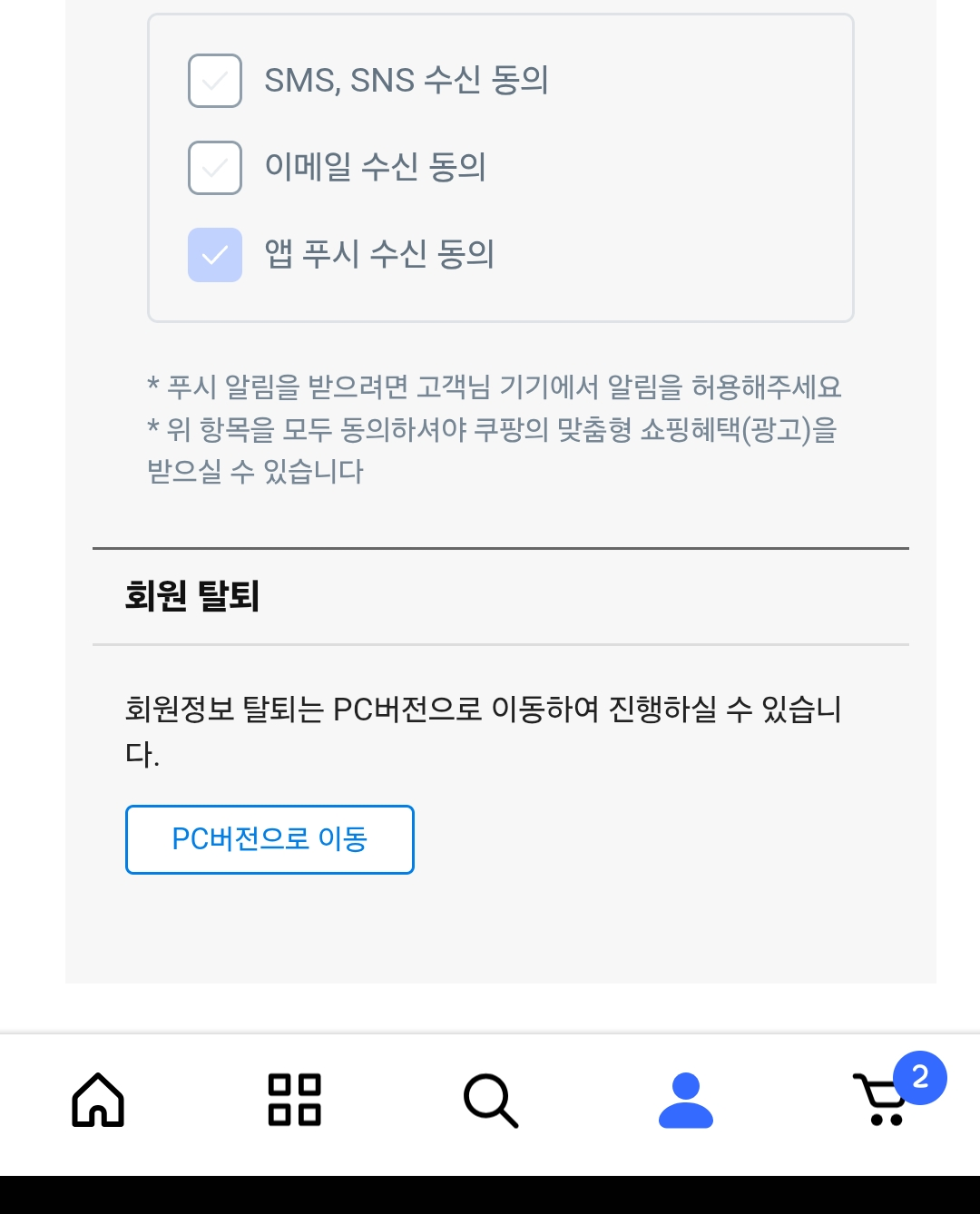 모바일 앱에서의 쿠팡 탈퇴 방법