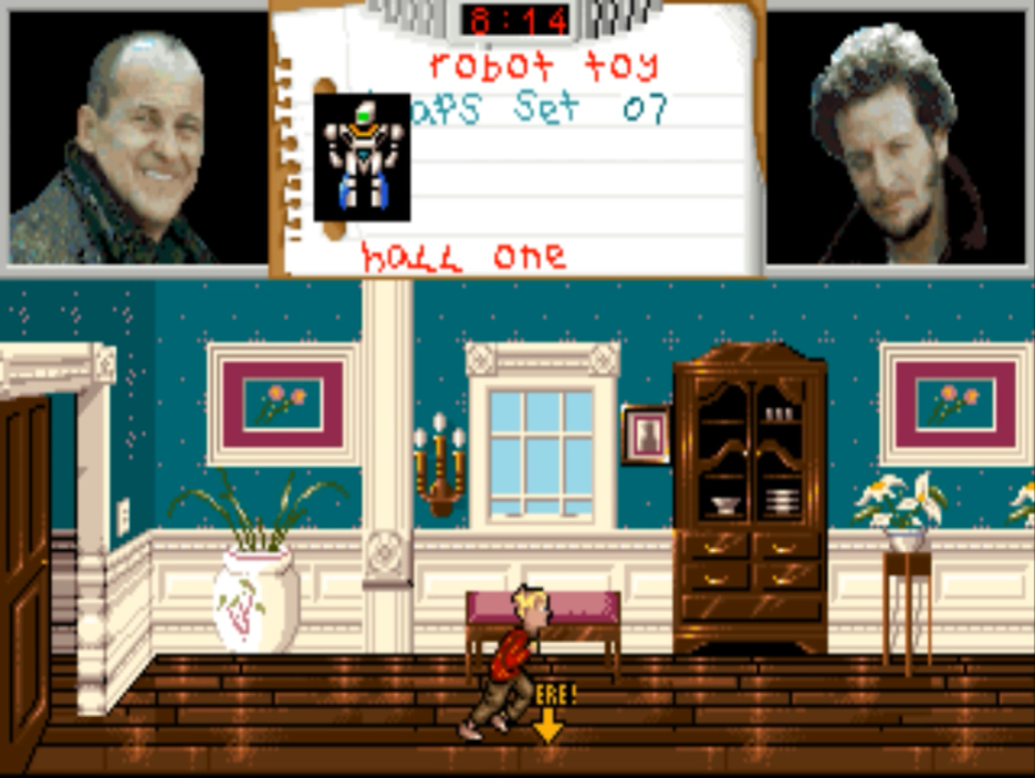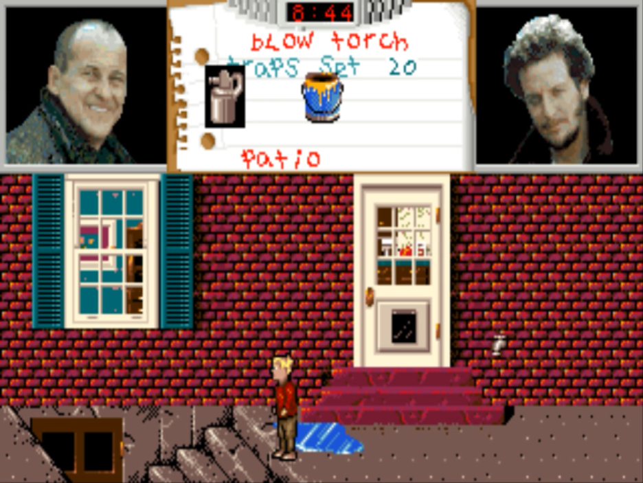 게임상의 시간대는 두 명의 도둑 마브와 해리가 케빈의 집에 침입하기 전부터 시작을 합니다. 영화에서의 케빈처럼 우리는 두 명의 도둑이 집에 오기 전에 집 곳곳에 함정을 설치해야 합니다. 도둑들이 함정을 밝아 50점의 점수를 얻으면 게임은 클리어가 됩니다. 그런데 생각을 조금 해보면 그 당시에도 게임의 가격은 저렴한 편이 아니었는데 게임의 길이가 너무 짧은 거 아닌가 생각해 봅니다. 실제 플레이해 보면 한판에 한 시간도 안 걸리는 플레이 타임을 가지는데 그런 면에서는 조금 아쉽네요.