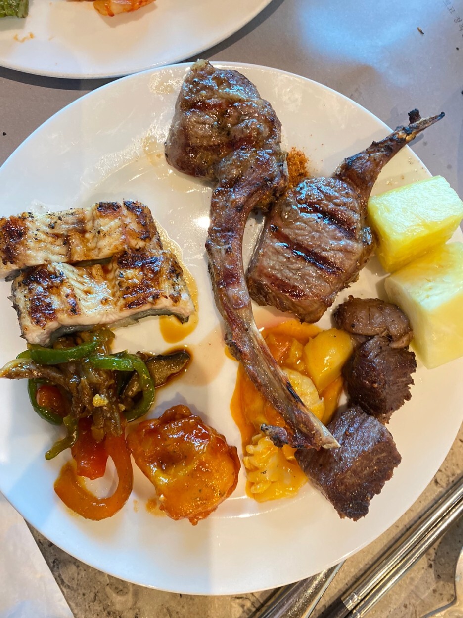 골고루 먹는 것을 좋아해서 최대한 안 겹치게 먹으려고 했지만 양고기는 참을 수가 없더라고요. 그래도 최대한 노력을 했습니다. 그릴 파트는 당연히 맛있었고 중식 파트랑 한식 파트도 맛있었습니다. 가격대가 있는 곳이라 먹고 후회하면 어쩌나 걱정을 조금 했거든요. 다행히 후회는 안 들었습니다.
