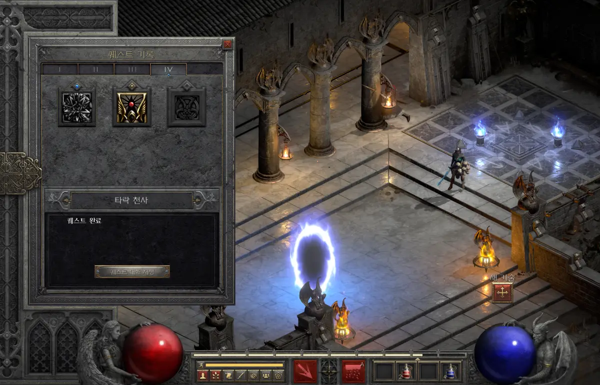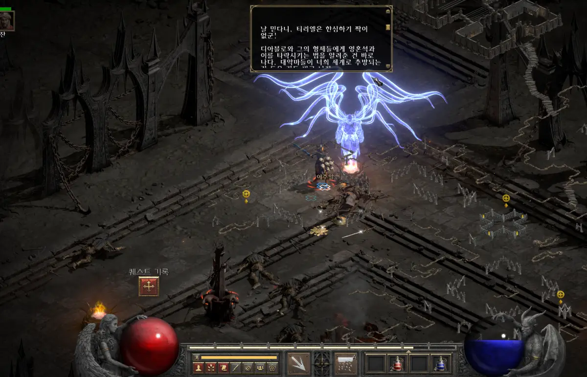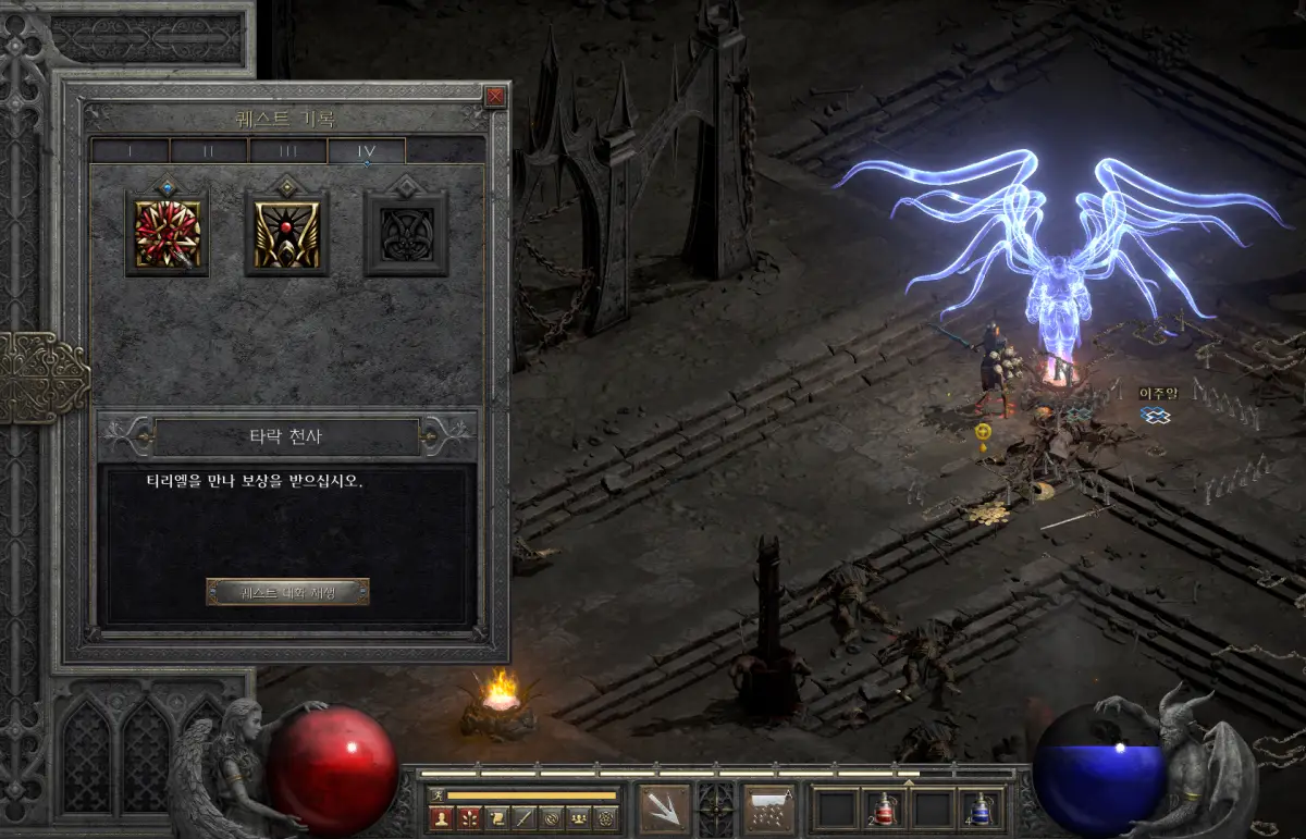 디아블로2 레저렉션 액트4 1 퀘스트 타락한 천사 이주알 처치하고 스킬 포인트 챙기기