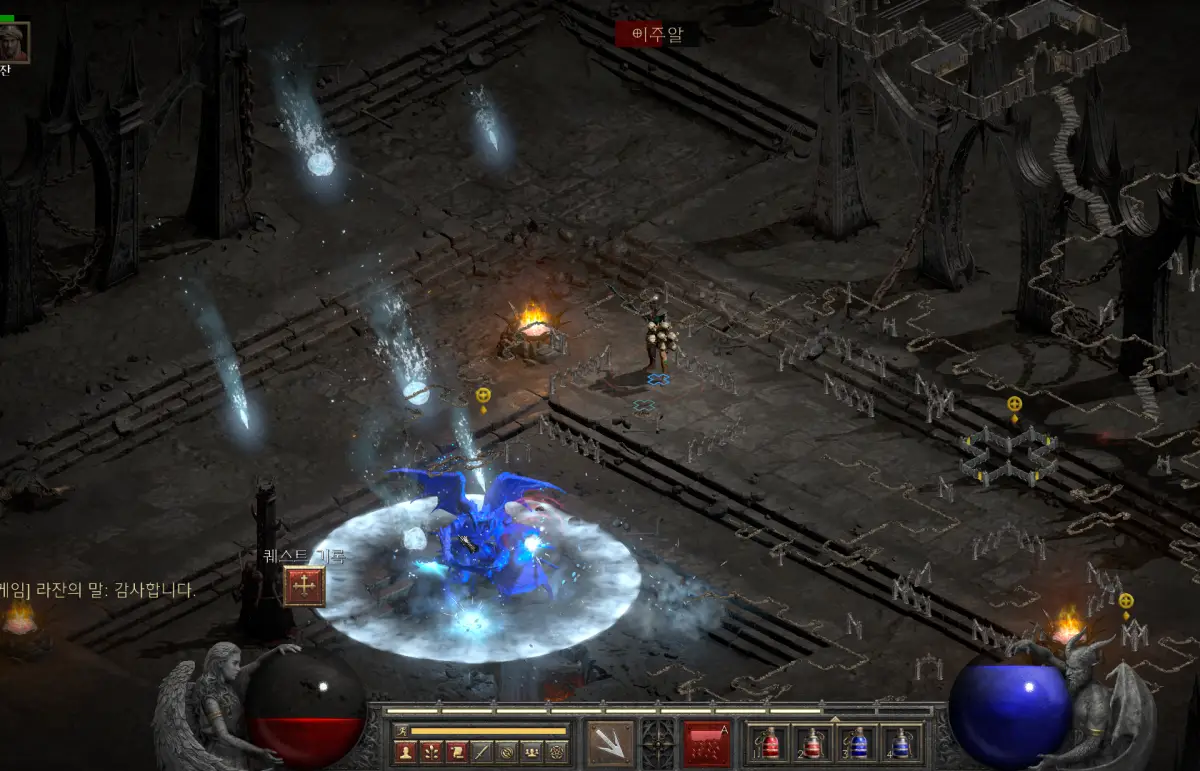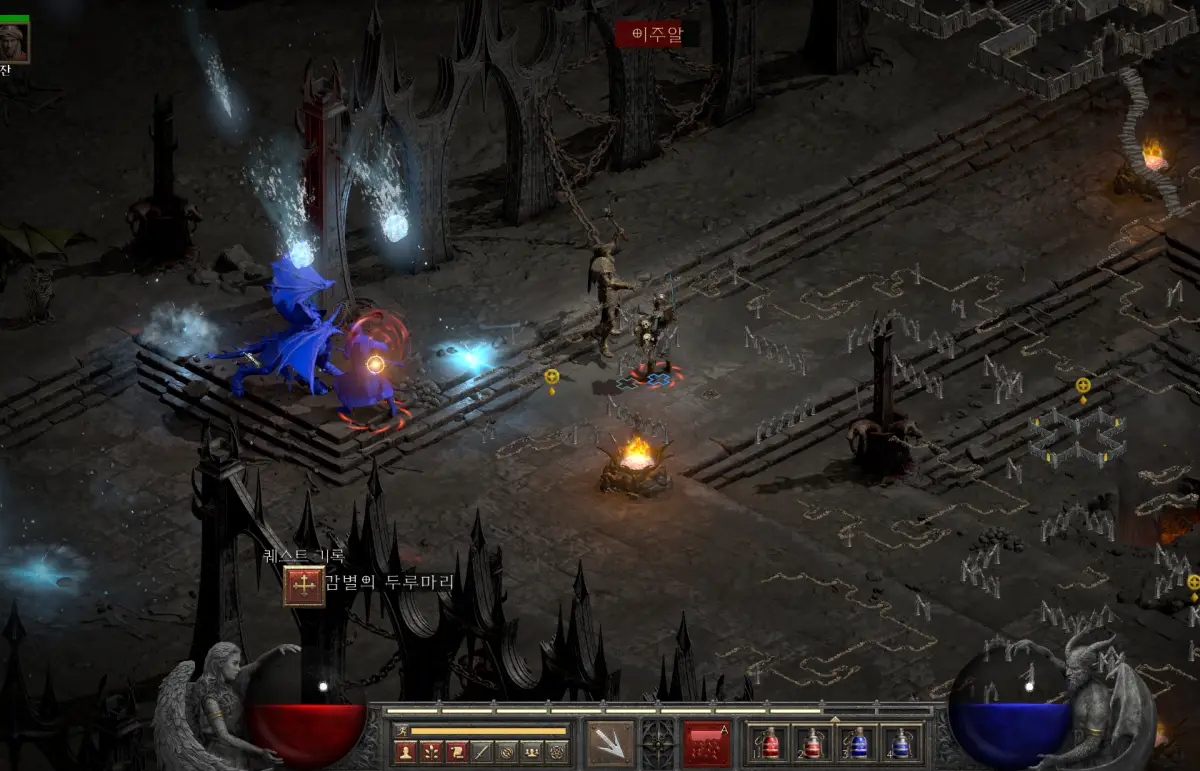 이들은 화면 밖에서 강력한 라이트닝 줄기를 발사하는데, 번개 저항력이 낮다면 순식간에 캐릭터가 누울 수 있습니다. 따라서 디아블로2 레저렉션 액트4 1 퀘스트를 진행하러 가는 길에는 번개 저항을 최대한 높이거나, 무빙을 통해 공격을 피하며 빠르게 이동하는 것이 생존의 핵심입니다.