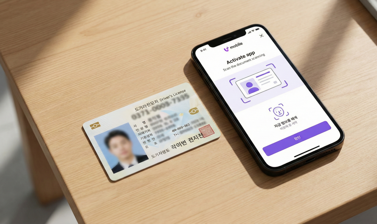 핸드폰 개통 안면인식은 단독으로 작동하지 않습니다. 앞서 촬영한 '신분증(주민등록증 또는 운전면허증)'의 정보와 여러분의 얼굴 데이터를 대조하는 과정을 거칩니다. 따라서 신분증 촬영 단계부터 신경 써야 합니다.