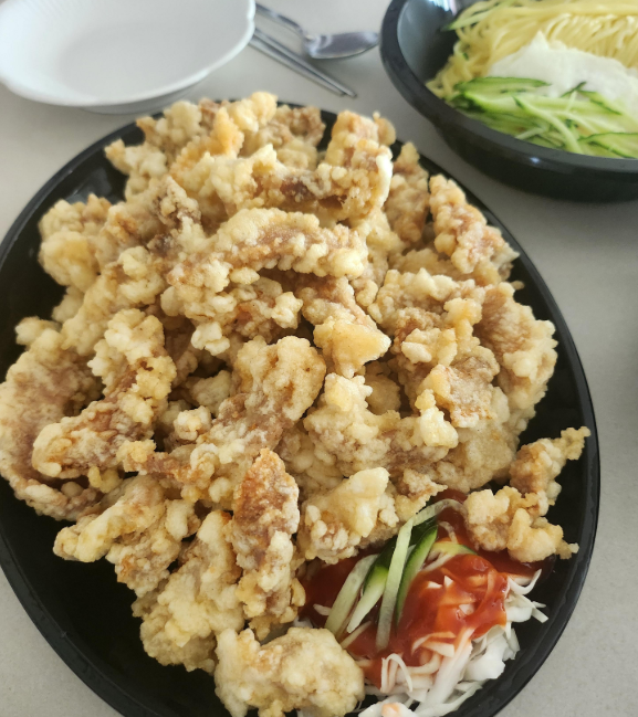 가장 먼저 손이 간 메뉴는 탕수육이었습니다. '소' 사이즈임에도 불구하고 포항 흥해 맛집 대유반점의 인심을 느낄 수 있을 만큼 양이 넉넉했습니다. 튀김 옷이 지나치게 두껍지 않고 고기와의 비율이 적절하여 씹었을 때 '바삭'하는 소리와 함께 고기의 육즙이 느껴졌습니다.