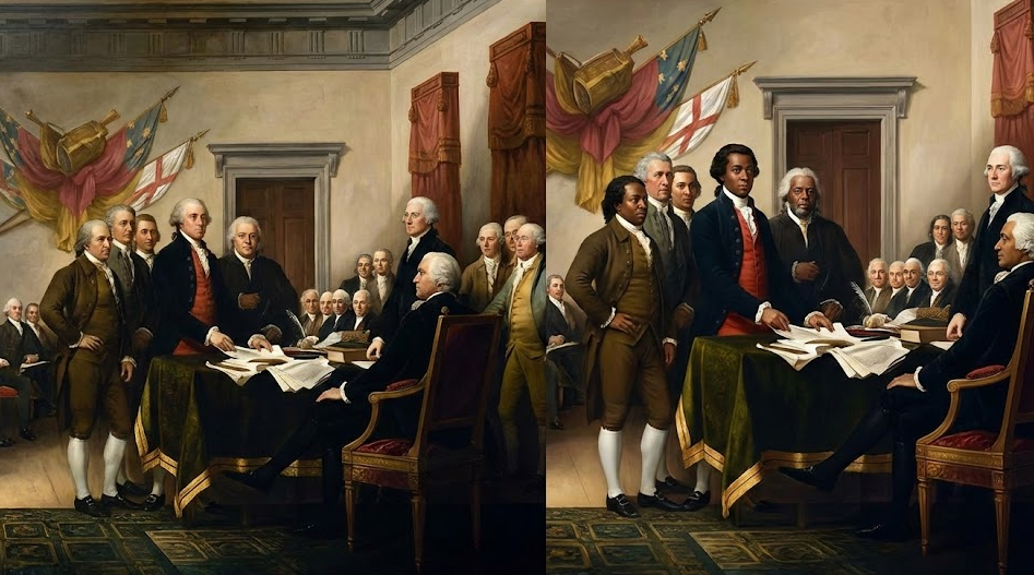 대표적인 예로, "미국 건국의 아버지(Founding Fathers)를 그려줘"라는 요청에 제미나이는 흑인 남성이나 아메리카 원주민 복장을 한 남성 등을 포함한 이미지를 생성했습니다. 실제 1789년 당시 건국의 주역들은 모두 백인 남성이었음에도 불구하고 말이죠. 심지어 2차 세계대전 당시의 '독일군(나치)'을 그려달라는 요청에는 흑인 남성과 아시아계 여성이 나치 군복을 입은 이미지를 생성해 큰 충격을 주었습니다.
