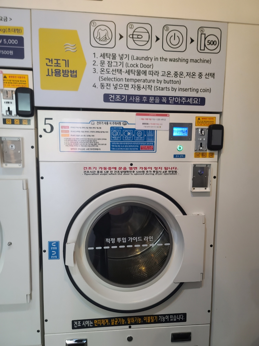 그러고 건조기 앞에 문구가 눈에 들어왔어요 "건조기 가동 중에 문을 열면 가동이 멈춥니다." 무슨 일이 있던 침착하게 대처하는 자세가 필요한 거 같아요.
