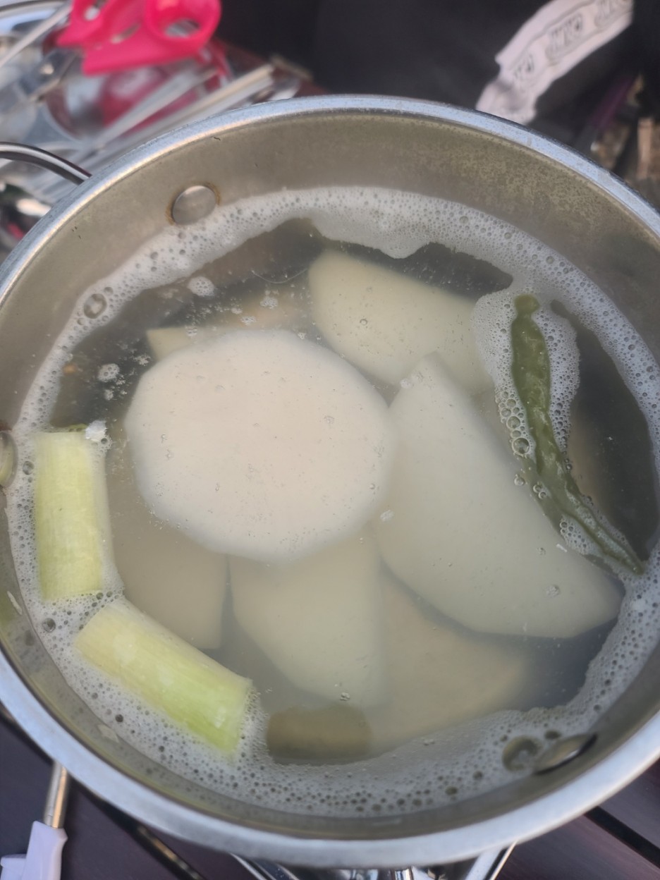 집 냉장고에 돌아다니던 어묵 육수 가루를 절반 정도 넣어줬어요.