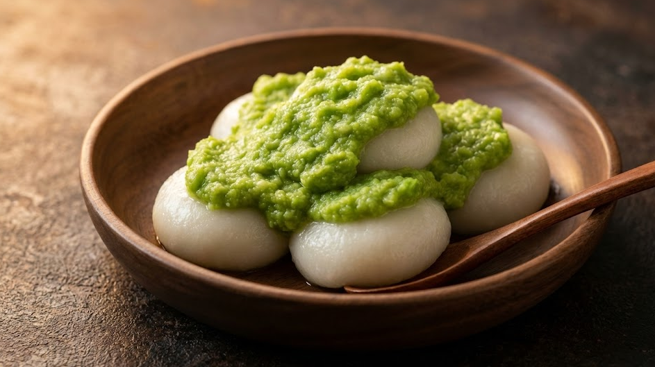 지역 특색이 가장 강하게 묻어나는 일본 센다이 기념품 살만한것을 원하신다면 단연 '즌다모찌'가 제격이에요. 즌다란 삶은 풋콩(에다마메)을 으깨어 설탕과 소금을 약간 넣어 만든 센다이 지방 특유의 초록색 앙금을 말해요. 이 즌다 앙금을 갓 찧은 쫄깃한 찹쌀떡 위에 듬뿍 올려 먹는 향토 디저트가 바로 즌다모찌랍니다.
