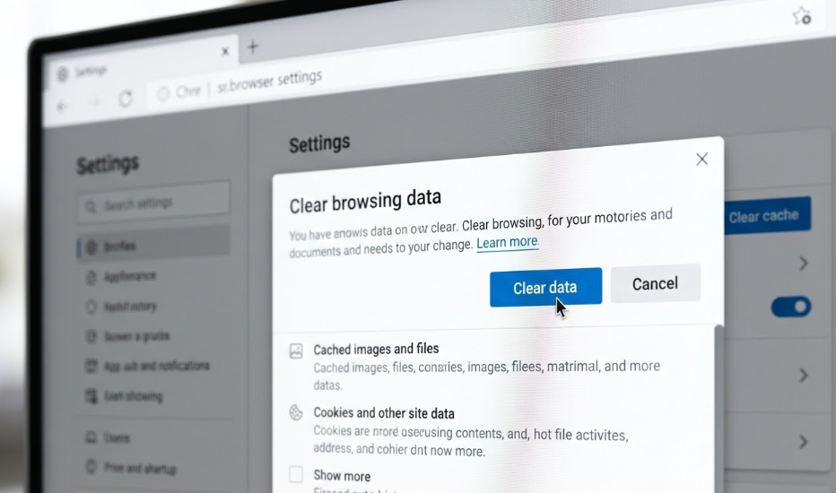 가장 먼저 시도해야 할 방법은 브라우저 청소입니다. 크롬이나 엣지를 사용하신다면 설정 메뉴로 들어가 인터넷 사용 기록 삭제 메뉴를 찾아주세요. 여기서 기간을 '전체 기간'으로 설정한 뒤, '쿠키 및 기타 사이트 데이터'와 '캐시된 이미지 및 파일' 항목을 체크하고 삭제 버튼을 누르면 됩니다.