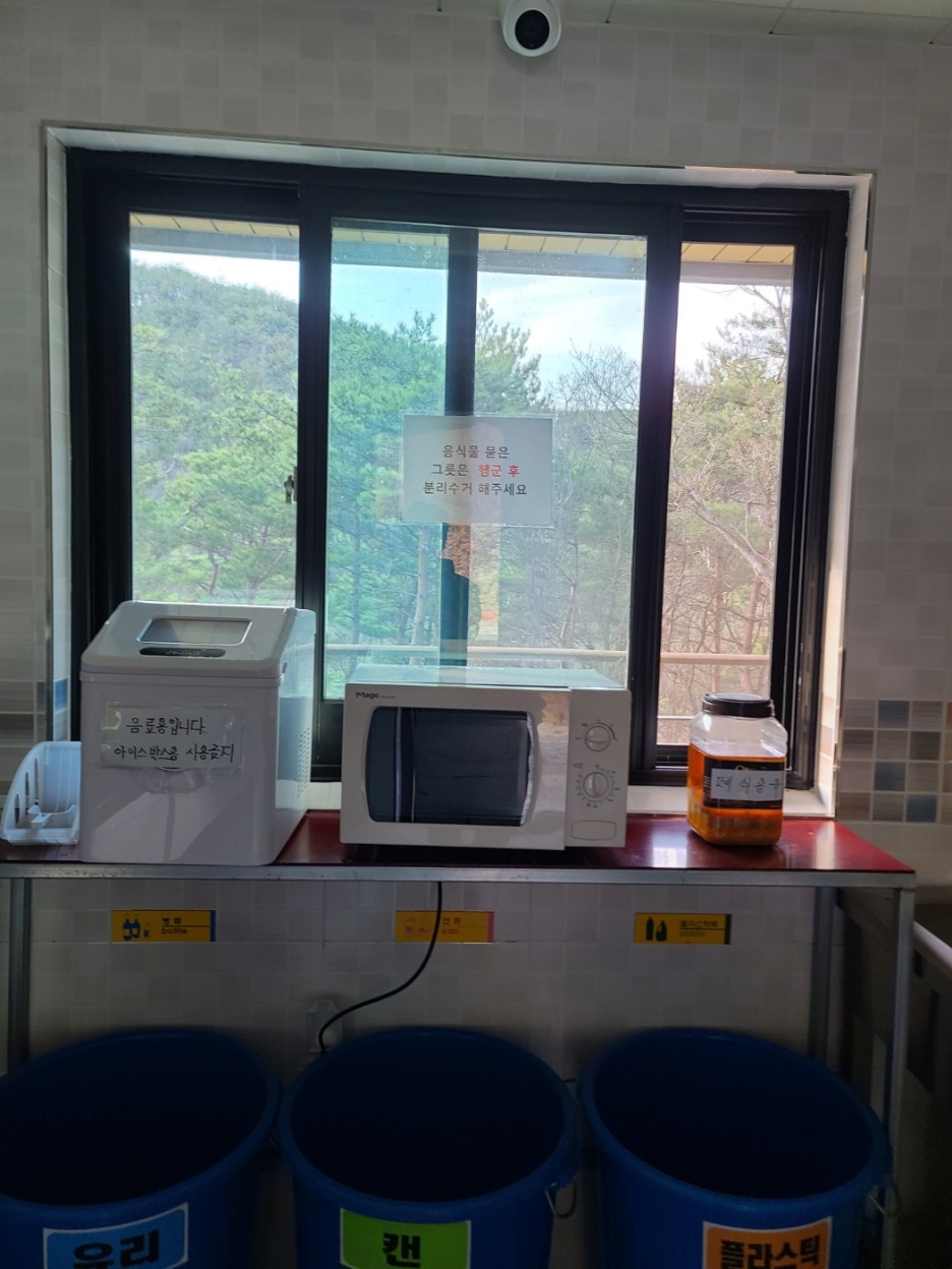 그리고 전자레인지와 작은 제빙기도 있는데요. 기억에 작년부터 있었던 걸로 기억해요. 여름에 시원하게 이용해서 좋았던 기억이 있습니다.