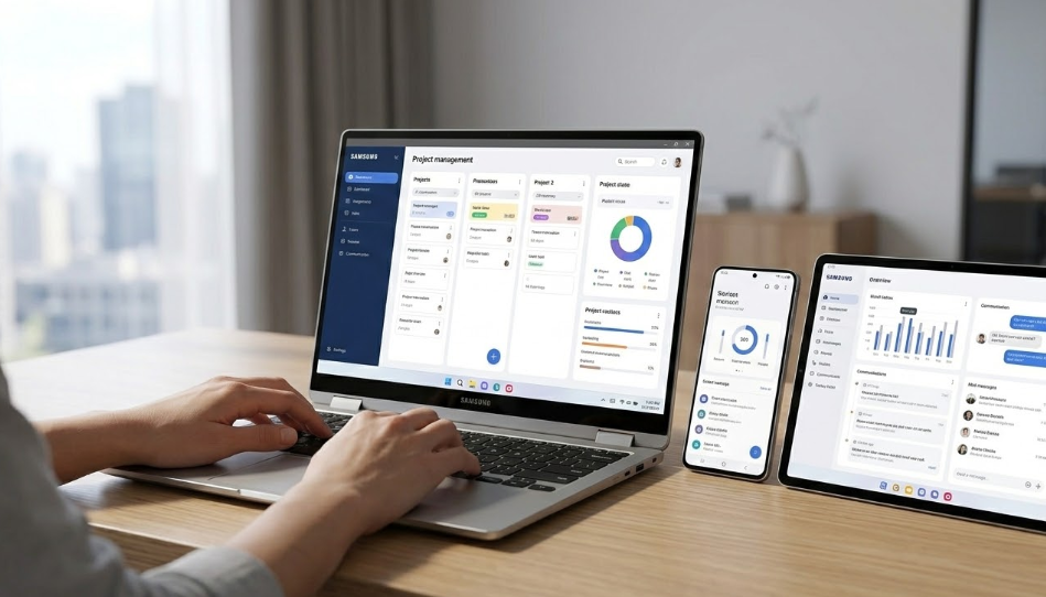 스마트폰과 태블릿, 그리고 PC가 유기적으로 연결되는 환경은 업무 효율성을 극대화하는 핵심 요소입니다. 이 모델은 삼성 갤럭시북4 프로 시리즈답게 강력한 '갤럭시 에코시스템(Galaxy Ecosystem)'을 지원해요. 스마트폰에서 촬영한 사진이나 문서를 선 연결 없이 '퀵 쉐어(Quick Share)'를 통해 단 몇 초 만에 노트북으로 전송할 수 있습니다.
