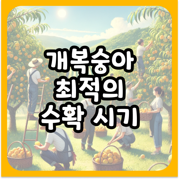 개복숭아는 6월 중순부터 8월 초까지가 최적의 수확 시기입니다. 이 시기에 수확한 개복숭아는 효소나 청으로 담가 건강하게 즐길 수 있습니다. 자연이 주는 선물, 개복숭아를 적절한 시기에 수확하여 그 맛과 영양을 최대한으로 누려보세요!