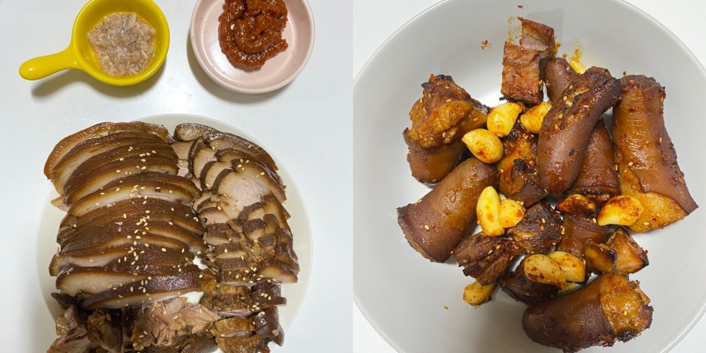 짝꿍과도 같이 먹었는데 족발은 지난번처럼 먹고 돼지꼬리는 매운 소스를 발라 마늘과 함께 구워봤습니다. 족발은 당연히 맛있었고 짝꿍도 가족들 처럼 돼지꼬리가 더 맛있다고 하네요. 수육처럼 족발도 오랜 조리시간이 부담스럽긴 하지만 결과물이 좋아 만족스럽네요. 다음에는 돼지꼬리만 주문해서 만들어 보고 싶네요.