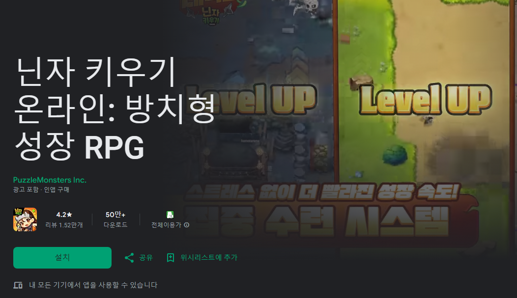 - 퍼즐 몬스터즈에서 개발한 이 게임은 닌자 테마의 방치형 MMORPG로, 플레이어는 다양한 닌자 캐릭터를 수집하고, 자동 전투를 통해 세계를 탐험합니다. 방치형 게임의 특성상 게임을 하지 않는 동안에도 진행이 가능해, 바쁜 유저들에게 적합합니다.