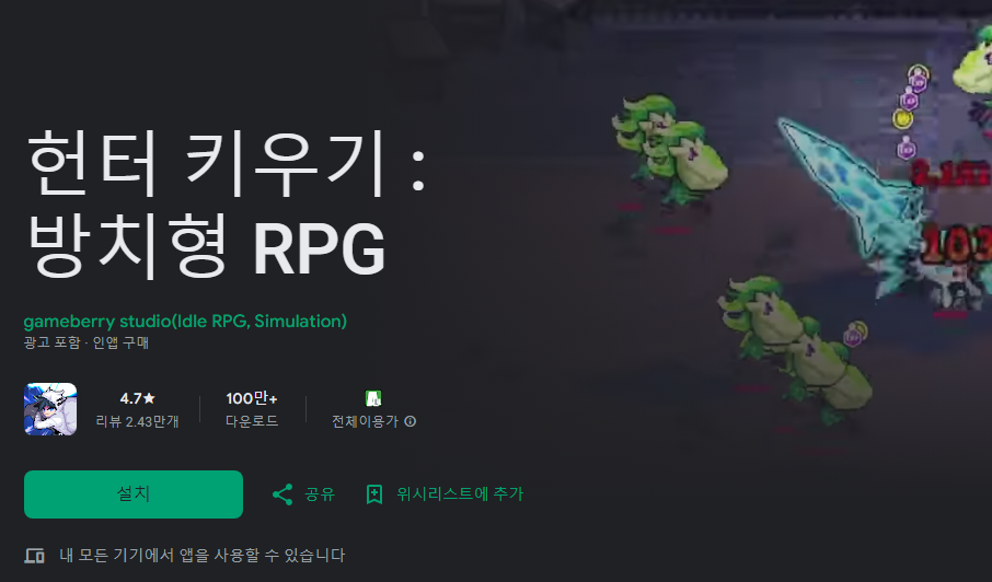 - Gameberry Studio에서 개발한 이 게임은 유저가 헌터 팀을 구성해 던전을 탐험하며 자동 전투를 진행하는 방식의 RPG입니다. 플레이어는 캐릭터를 커스터마이징하고, 전략적으로 팀을 구성해 도전할 수 있습니다.