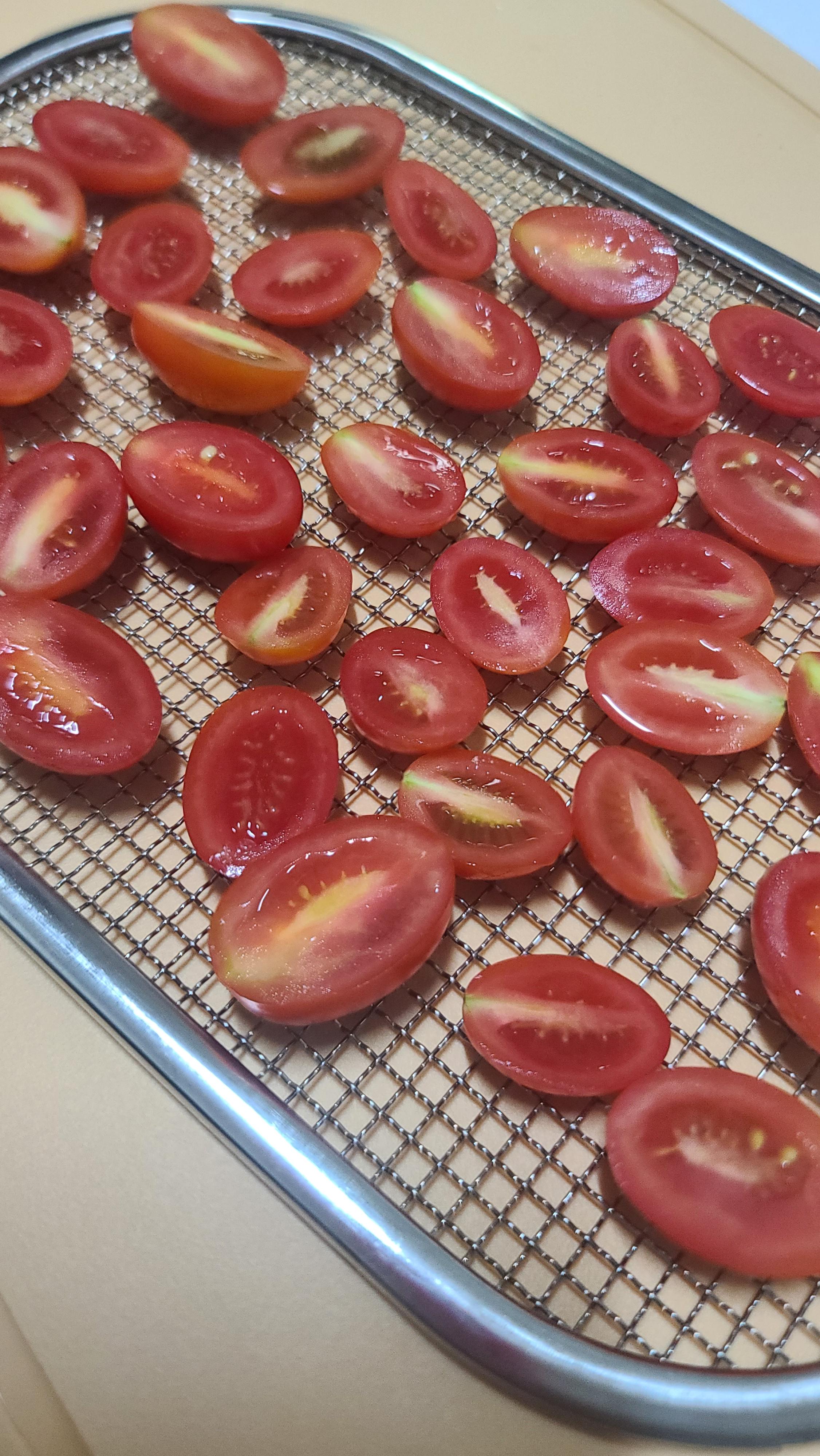 트레이에 준비된 식재료를 겹치지 않도록 고르게 펼쳐 놓습니다. 다양한 식재료를 동시에 건조하고자 한다면, 수분 함량이 비슷한 것끼리 같은 트레이에 배치하는 것이 좋아요. 예를 들어, 수분이 많은 과일과 비교적 건조한 채소를 구분해서 놓으면 건조 시간이 일정하게 맞춰져 더욱 효율적이랍니다.