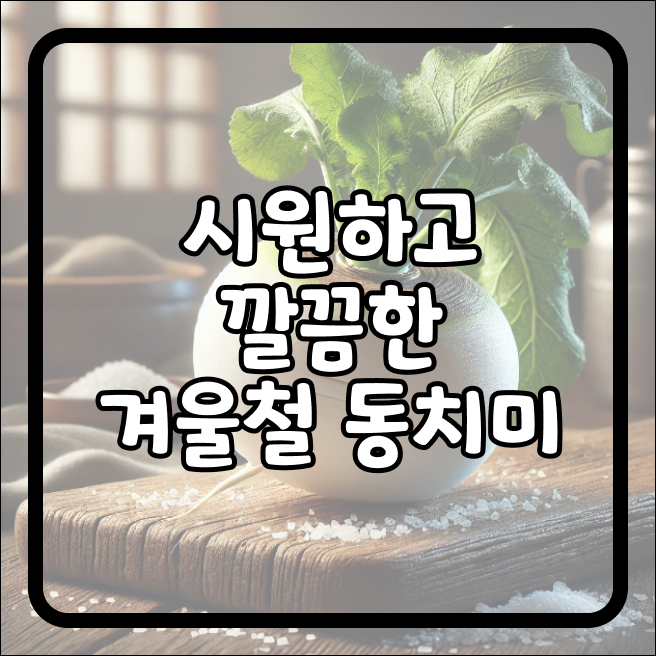 안녕하세요! 오늘은 겨울철 대표 김치인 동치미 만드는 법을 소개해 드릴게요. 동치미는 아삭아삭한 무와 시원한 국물이 일품인 물김치로, 특히 고춧가루가 들어가지 않아서 매운 음식을 잘 먹지 못하는 사람들도 부담 없이 즐길 수 있어요. 추운 겨울철에 따뜻한 밥 한 그릇과 함께 먹으면, 그 시원한 국물 맛이 속을 개운하게 해주고 입맛을 돋우는 최고의 음식입니다. 이제 함께 동치미를 담가 볼까요?