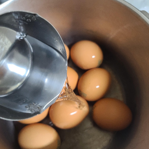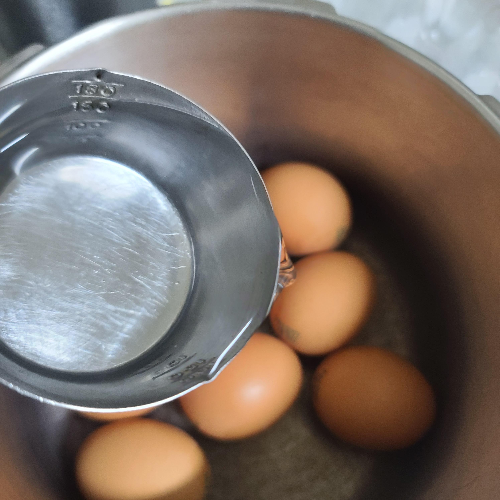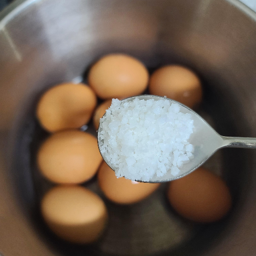 냄비에 계란이 잠길 만큼 물을 넣고, 소금과 식초를 약간 첨가하세요. 소금과 식초는 삶는 도중 계란이 터지는 것을 방지하고 껍질을 쉽게 벗길 수 있도록 도와줍니다.