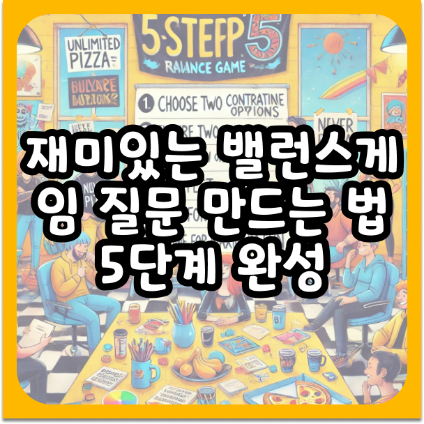 재미있는 밸런스게임 질문은 단순히 대화를 넘어서 참가자 간의 유대감을 높이는 훌륭한 도구입니다. 위의 5단계를 참고하여 창의적이고 흥미로운 질문을 만들어 모임을 더욱 즐겁게 만들어보세요!