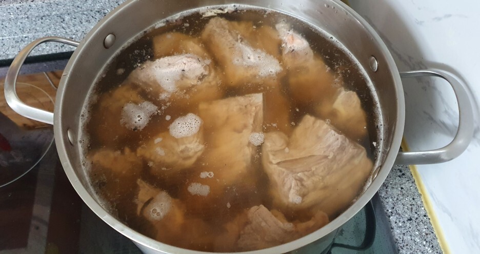 전 약 한 시간을 끓였고 작은 덩이를 꺼내서 확인해 보니 완전히 익었더라고요. 맛이 부족하게 느껴진다면 치킨스톡을 조금 넣는 것도 하나의 방법이 될 수 있을듯합니다. 가족들이 항상 제가 하는 음식은 맛있다고 해주지만 이번에는 진심으로 맛있다고 해주었네요. 생각보다 간단해서 다시 해보고 싶은 돼지등뼈탕이네요. 다음에는 등뼈 말고 돼지갈비로 해보고 싶네요.
